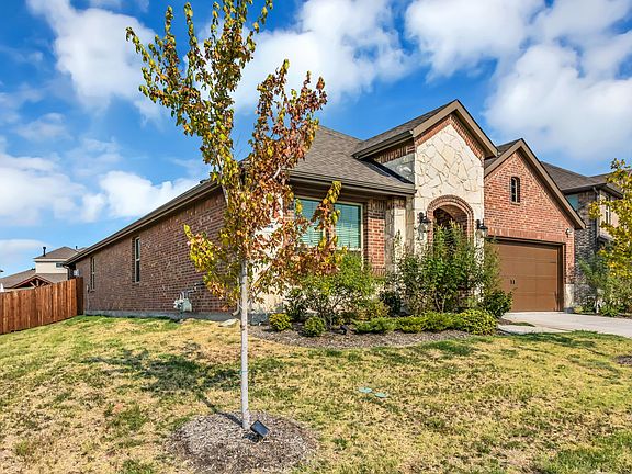 Welcome to this 2021-built and immaculately kept property in Lakeside at Heath community and zoned to top-rated Rockwall ISD! It is within walking distance to the Linda Lyon elementary school. This single story home with 4 bedrooms and 3 full baths situated on a desirable over-sized lot offers the perfect blend of elegance, comfort, and modern convenience. Inside, you’ll find beautiful wood like tile flooring throughout with soaring 10-foot ceiling! The open-concept design seamlessly connects the Living and dining areas to the gourmet kitchen that features quartz countertops, tile backsplash, gas cooktop, built-in ovens, stainless steel appliances, and a breakfast bar island with sink. Enjoy time in the expansive living room and dining area with picture sized windows for abundant natural lighting and a switch-lit fireplace. Unwind in the spacious primary bedroom, a spa-like bath with dual sinks and glass enclosed shower. Step outside to a covered patio and an expansive backyard—perfect for entertaining and outdoor fun. Only 0.5 mile away from the Lake Ray Hubbard for boating, sailing and hiking. Easy access to highway 80 and countless shopping and dining options close by. Property comes with tankless water heater, full rain gutters, and EV charging outlet in the garage. A must see!