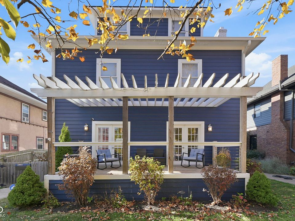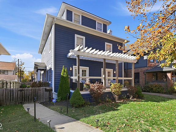 Welcome to 3106 Washington Blvd-an elegant blend of historic charm and modern comfort in the heart of Indianapolis's sought-after Meridian Park neighborhood. Built in 1921, this beautifully updated home offers over 4,000 sq ft of living space designed for both style and function. The chef's kitchen features stainless steel appliances, a gas range, and a spacious island perfect for gatherings. The primary suite serves as a relaxing retreat with a walk-in closet, soaking tub, and glass-enclosed shower. Upstairs, a flexible third-level suite opens to a private rooftop terrace with a stunning view of the downtown skyline-ideal for entertaining or unwinding. The finished basement adds even more living space with a cozy theatre and bar area. Surrounded by mature trees and classic architecture, this home perfectly captures the charm of historic Meridian Park while offering all the conveniences of modern living, just minutes from downtown and local favorites.