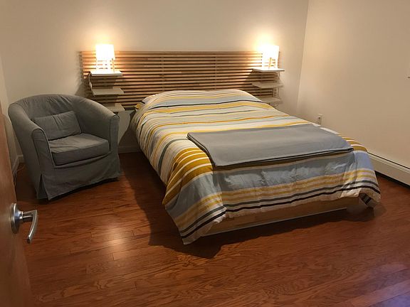 Turn-key apartment in a renovated home with only one other apartment. Open floor plan, 750 sq ft with modern Scandinavian furnishings, stainless steel appliances, European washer/dryer, queen-sized bed/mattress, flat-screen tv, large living room with a dining area, as well as a designated office nook. Hardwood floors, and access to storage. Designated parking space in driveway. Lovely back yard with a designated patio.