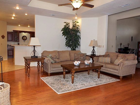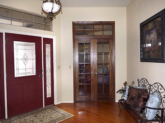 Beautiful! Split floor plan, raised Coffer & Pan ceilings, panel doors, recessed lighting, 2 heating & cooling units, wood, carpet, 20x20 tile floors, all bedrooms feature walk-in closets. Open Foyer views the Living room, Formal Dng., French Doors open to versatile space which could serve as an Office, Piano or Family room. Fireplace framed in wood & tile. Lots of cabinet & counter space in Kitchen, all appliances, Breakfast nook, large Pantry, French Doors. Covered Patio has 2 ceiling fans.