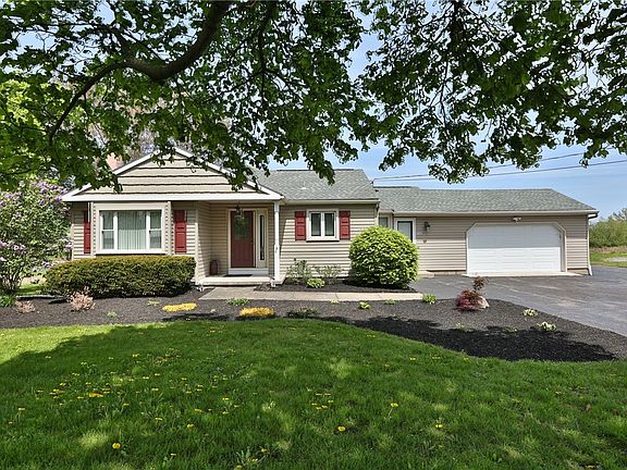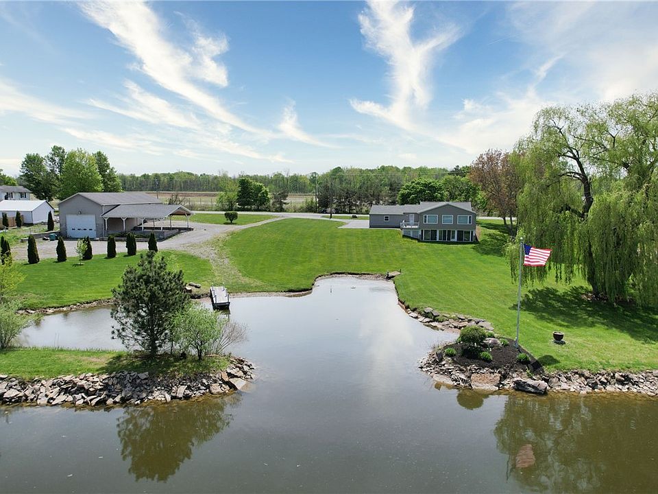 The most Breath taking serene setting you have ever seen. Don't judge till you see the entire property. Home was all redone in 2000 with an open warm layout. The home features on the upper level 2 bedrooms, 2 full baths, great room over looking the water with large picture windows, deck to enjoy your beverages with a relaxing atmosphere. Lower level has a 3 season room, 1 bedroom and a full bath, unfinished basement area. To the east of the property is a 1980 sq. ft. 2 story party barn with a full kitchen, appliances, laminate floor, tall ceilings, full bath, and a large overhead door for those family reunions under the covered pavilion. Lower level is unfinished with large overhead door to park 8-10 vehicles etc. Home is in Spencerport Schools and the biggest bonus is 501' of canal frontage with an inlet, permanent boat dock and a the most picturesque view with a fountain. Home is unique to say the least. Possibilities and uses are endless. Enjoy the volleyball court for those family gatherings and the empty lot for your summer games. Square footage was done by a licensed appraiser. negotiations are