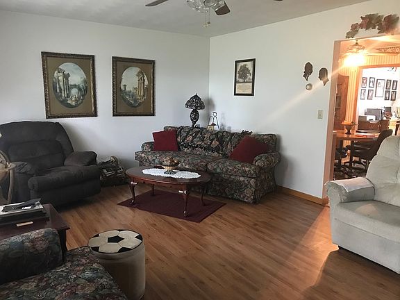 Great 4 bedroom ranch home, not far from town. Fully equipped kitchen. Formal dining room. Master BR has 2 closets + attached bath with additional closet space. Pull-down stairs in garage. Basement provides abundant storage + plenty of room for a work shop. Woodburner in the basement.