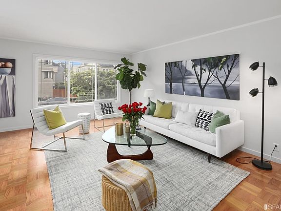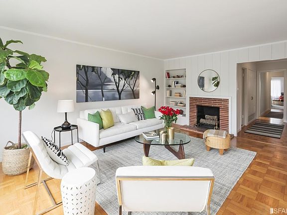 Centrally located in desirable Lone Mountain, this classic mid-century home is flooded with natural light throughout the day. Features include hardwood floors, a wood-burning fireplace and a spacious kitchen with woodblock countertop usable for a casual meal or chopping vegetables. With 2 bedrooms and 2 baths located towards the back of the house and the public rooms in the front, this home is well laid-out for comfortable living. A deck off one of the rear bedrooms looks over the garden with several fruit trees. An additional room and bath down provide space for a home office. Access to the back patio and garden is from the garage. The large garage can accommodate 2 cars with plenty of room for a workshop. This property is within walking distance to Golden Gate Park, Rossi Playgrond and numerous shops/restaurants/public transportation options on Geary Blvd and Balboa Street.