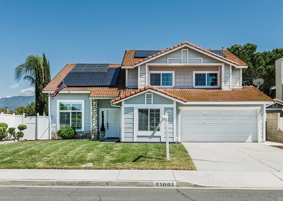 Welcome to this fully upgraded 5-bed, 3-bath home in the highly desirable Wolf Valley community of Temecula. Featuring a spacious open floorplan with soaring ceilings, this home is filled with natural light and modern comforts. The beautifully updated kitchen includes granite countertops, top-of-the-line Energy Star appliances, and seamlessly flows into the living and dining areas—perfect for entertaining. A convenient downstairs bedroom and full bath offer ideal space for guests or multi-generational living. Step outside to your private backyard oasis with a built-in BBQ, sparkling pool, spa and tranquil waterfall, all set against stunning views of the nearby mountains. Sitting on a rare double lot, the property also boasts an established vineyard and RV hookups—offering exceptional versatility along with the tranquility of a private garden retreat. Leased solar helps keep energy costs low, and a low HOA adds to the appeal. Located just minutes from shopping, dining, entertainment, and top-rated Temecula schools. Enjoy nearby parks, golf courses, freeway access, and the luxury of being able to walk to Pechanga Resort and Casino. This home offers the perfect blend of comfort, convenience, and resort-style living.