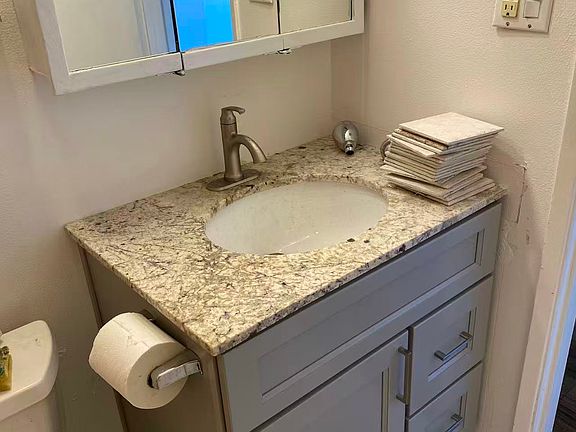 Bay viewTile floorWood like tile floorLarge enclosed patioQuartz countertopSpectacular viewFresh cabinets