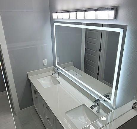 Luxury finishesPorcelain tile flooringQuartz countertopsElegant glass railings