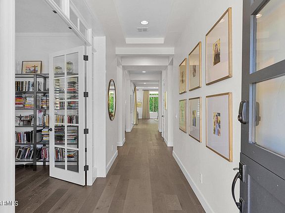 Absolutely gorgeous home in highly desired Warner Groves at Morrison Ranch! 6 bedrooms, 4.5 baths, den & large loft. Primary & guest suite are located on main floor. Every detail of this home has been designed with the finest finishes! Flat textured walls, 11 ft ceilings, wood floors, new carpet, custom drapery & control4 throughout. Kitchen features double-stacked cabinets, quartzite counters, SS appliances, double ovens, gas cooktop & walk-in pantry. Indoor/outdoor living at its best, with sliding doors to side private courtyard w/ pizza oven & more sliders to entertainer's dream backyard, featuring sparkling pool, jacuzzi, lg patio, trampoline, garden & fruit trees! Home has cosmic effect permanent LED lighting! Neighborhood has tree lined streets, grass yards & large parks & more!