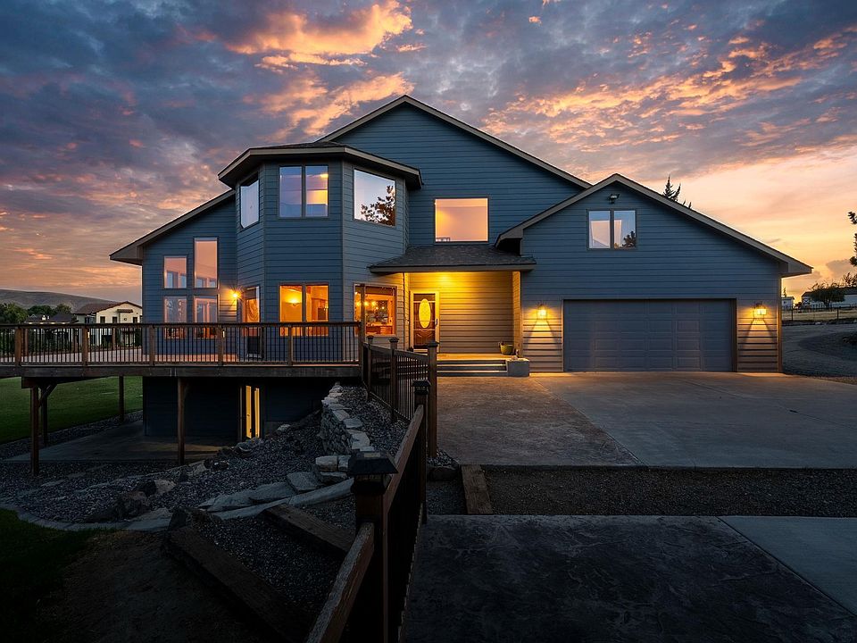 MLS# 286313 3107 Mount View Adams Dr., West Richland — A Modern Country EstateNestled at the end of a private road, this beautifully updated 3,366 sq. ft. home on 2.5 fully fenced acres offers stunning panoramic views and all the comforts of modern living—just minutes from West Richland’s shops, dining, and amenities. Main Level-The bright, open-concept layout connects the living space, dining room, and chef’s kitchen with warm hardwood floors, granite countertops, an eat-in island, and upgraded stainless appliances. Large windows throughout frame the stunning views and flood the home with natural light. A thoughtfully placed laundry/mudroom and powder bath round out this welcoming floor. Step outside to enjoy the expansive 1,300+ sq. ft. wraparound porch, offering spaces to relax, dine, or simply take in the peaceful surroundings. Upstairs, the luxurious primary suite features vaulted ceilings, expansive picture windows, and sweeping vistas. Indulge in the spa-like en suite with a freestanding soaking tub, walk-in glass shower, dual vanity, and a custom closet system. Adjacent, a versatile bonus room—perfect as an office, nursery, or den—also enjoys breathtaking views and abundant natural light. The daylight basement includes three additional bedrooms, a full bath, and ample storage, providing flexible space for family or guests. The guest suite has a private outdoor entrance, kitchenette, bathroom, and laundry—ideal for multi-generational living, long-term guests, or Airbnb income potential. Set among mature fruit-bearing trees—apple, cherry, pear, plum, apricot, elderberry—as well as thriving grapevines and raised garden beds, this irrigated edible landscape is ready to enjoy. Additional outbuildings include a chicken coop, shed, and storage barn. The private basketball court adds a fun and active element to your lifestyle. The 40×60 insulated, temperature-controlled shop is a showstopper—featuring 16' sidewalls, two 12×14 overhead doors, extra-thick concrete floors, loft for storage, dedicated 200-amp panel, and two RV hookups—perfect for business, hobbies, or travel enthusiasts. All major systems have been thoughtfully replaced: roof, HVAC, upgraded septic, water heaters, well pump and motor, whole-house water filtration, modern lighting, and stainless-steel appliances. This estate offers a rare combination of privacy, practicality, luxury, and lifestyle flexibility. Don’t miss your opportunity to own this one-of-a-kind estate—schedule a tour!