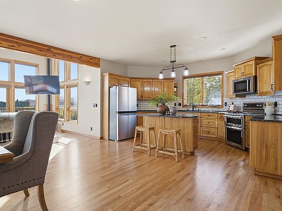 MLS# 286313 Nestled at the end of a quiet private road, 3107 Mount Adams View Dr. offers a rare blend of privacy, modern comfort, and unforgettable lifestyle living on 2.5 fully fenced acres, just minutes from local amenities. This beautifully updated 3,366 sq. ft. home has been cherished for the way it brings people together. The sellers adored hosting here, and it’s easy to understand why. The sunlit open-concept main level was designed for gathering; warm hardwood floors, expansive living and dining spaces, and a kitchen that flows effortlessly for entertaining. Massive windows frame panoramic views, while the 1,300+ sq. ft. wraparound porch becomes the true centerpiece of the home. On summer evenings, friends filled the yard while kids played on giant inflatable slides as parents relaxed on the deck. On Fourth of July and New Year’s Eve, fireworks illuminated the sky in every direction- a private show from the comfort of your own home. Upstairs, the primary suite offers a quiet retreat with vaulted ceilings, a spa-inspired bath, and breathtaking views. A nearby bonus room adds flexibility for an office, nursery, or private lounge. The daylight basement includes three additional bedrooms, a full bath, and generous storage, ideal for guests, teens, or a separate family space. A fully self-contained guest house provides exceptional independence for long-term visitors or multigenerational living. With its own entrance, kitchenette, full bath, and laundry, extended family stayed comfortably for months at a time. Outside, the property features an edible landscape of fruit trees, grapevines, and raised beds, along with a basketball court, chicken coop, shed, and storage barn. But the true crown jewel is the 40×60 heated and cooled shop, meticulously designed with reinforced concrete, abundant electrical, bright LED lighting, two RV hookups, oversized doors, loft storage, a dedicated compressor room for noise suppression, and 16' sidewalls- ideal for RV owners, hobbyists, contractors, or small-business needs. With major systems updated throughout—roof, HVAC, septic, well pump, filtration, appliances, lighting- this home blends modern reliability with country charm and purposeful design. Acreage. Privacy. Space to gather. Room to breathe. This is more than a home—it’s a lifestyle. Come experience the unmatched joy of living on Mount Adams View.