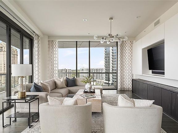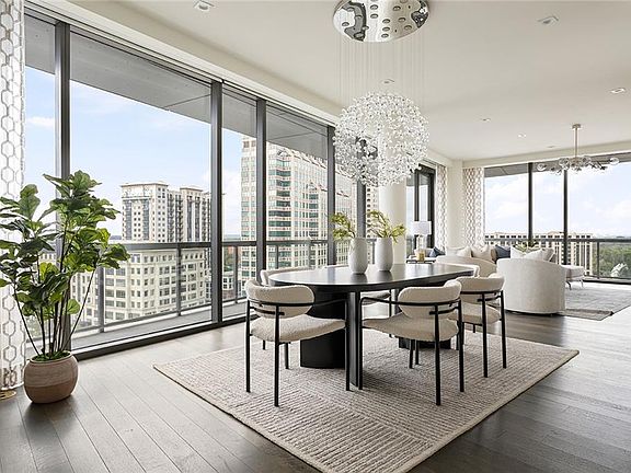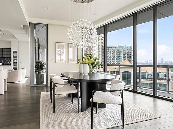 Welcome to luxury living in the heart of Buckhead. This stunning three-bedroom condominium showcases sweeping views of the downtown skyline and offers a rare blend of sophistication, comfort, and convenience. Designed for both everyday living and entertaining, the open layout features a separate den/office and an expansive wraparound patio with a built-in fireplace—perfect for seamless indoor-outdoor living. The chef’s kitchen impresses with sleek Pedini cabinetry, a waterfall-edge island, walk-in pantry, and top-of-the-line appliances, all framed by dramatic skyline views. A custom wet bar and built-in cabinetry further enhance the home’s entertaining spaces. The floor plan is thoughtfully designed with privacy in mind: the primary suite is set apart from the secondary bedrooms and den. Built-in storage throughout ensures both function and style. Residents of this prestigious community enjoy world-class amenities including a resort-style infinity-edge pool, state-of-the-art fitness center, club room, landscaped gardens, valet parking, and 24-hour concierge service. The home also includes two deeded parking spaces in a gated garage and a private storage unit. All of this is just steps away from Buckhead’s premier dining, shopping, and entertainment—making this residence the perfect blend of luxury and lifestyle.
