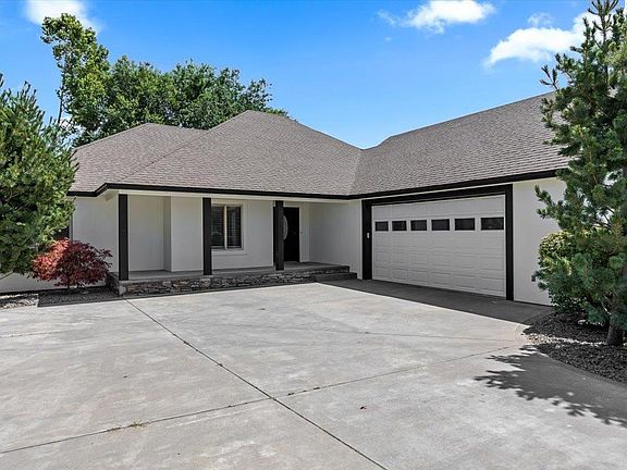 MLS# 286124 Welcome to this beautifully maintained home offering thoughtfully design and stylish upgrades throughout! From the moment you arrive, you’ll appreciate the side-load garage with new epoxy coated floor, new exterior paint, and inviting curb appeal. Step inside to find wood laminate flooring, crown molding, and abundant natural light flooring through the open great room layout- ideal for entertaining of everyday living. The dining area is impresses with a vaulted ceiling and skylight, adding charm and brightness to every meal. The kitchen is a true highlight, featuring solid surface countertops, rustic cabinetry, built-in smooth top range with oven, microwave, refrigerator, dishwasher, and a pantry- perfect for any home chef. Enjoy a dedicated laundry room complete with tile floors, ample cabinet storage, a countertop workspace, and a sink for added convenience. The primary suite offers a peaceful retreat with a trayed ceiling, ¾ tile bathroom, make-up vanity, laminate countertops, and a spacious walk-in closet. The main bath serves guests or family with a double vanity and tile flooring. Outside, you’ll find an oversized two-car garage with finished overhead storage, plus a stick-built 11x10 shed in the backyard- perfect for tools, hobbies, or extra storage. This home blends comfort and character with practical features and stylish details- ready for you to move in and make it your own!