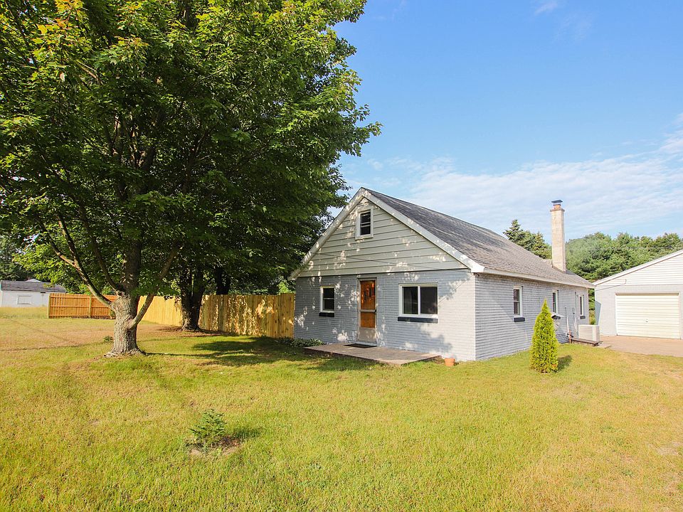 Located in the excellent Fruitport School district this 3 bedroom - 2 upstairs, 1 on main. Large 3 stall garage and a shed - all on 2.56 acres. The current owners have updated the kitchen, nice cabinets, updated flooring thru out, update the mud/laundry room, painted the house, fenced in the yard w/privacy fence, put central air conditioning in, replaced all the windows with Pella windows which has 19 years remaining on transferrable warranty. Home has a newer water pump & septic system - just a cute house! You must see it and home has a huge yard with a couple acres of woods with trails.