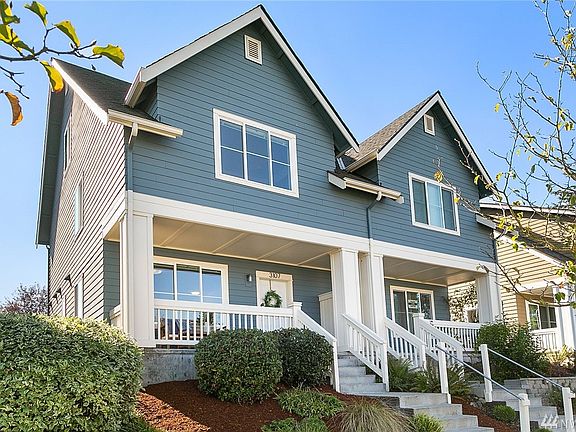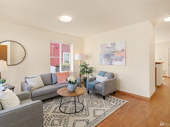 Rare 4 bedroom end unit townhouse with great street appeal in the High Point community. Covered front porch for our warm autumn evenings. Close to parks, community center and shopping. 3 good sized bedrooms on the second level and 1 bedroom on the upper level with a peekaboo view of Seattle out the window perfect for an office or study room. Bright kitchen with dining area, new stainless fridge and electric range. Plenty of storage including an out building in the back for bikes, tools, etc.