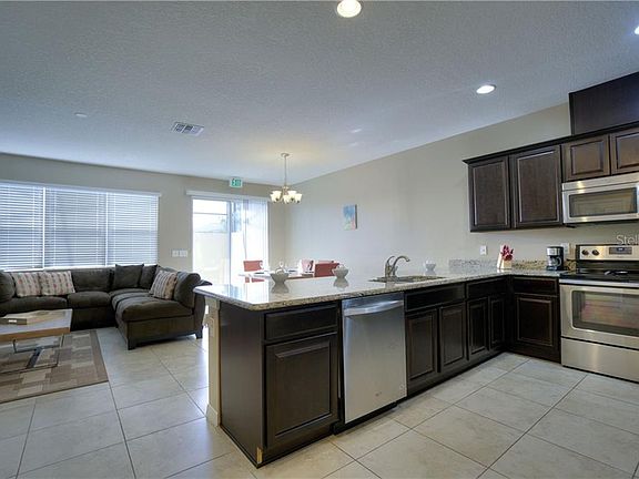 PRICE REDUCTION!! DON'T MISS THIS INVESTMENT OPPORTUNITY. This gorgeous FULLY FURNISHED 2-story townhouse is situated at the gated community of Compass Bay in Kissimmee. The home features an open layout with a beautiful kitchen with granite counter tops and stainless steel appliances with opening onto the living room and dining room with makes a great space for entertaining. The second floor offers 3 bedrooms and 3 bathrooms, 2 of the bedrooms have their own bathroom. Enjoy the Florida sunshine in your own private pool with a screened patio. Conveniently located close to Disney parks, Disney Spring, Premium Outlet and restaurants. You can use this home as a primary residence, seasonal second home, short-term or long term investment rental. This townhouse is an absolutely perfect choice!