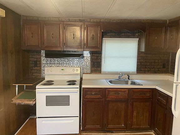 This 2-bedroom, 1.5-bath mobile home is located in Bradshaw Mobile Home Park and offers a bright, spacious living area filled with natural light. The kitchen features generous cabinet and counter space, a full-size refrigerator, and an electric range, with pleasant window views overlooking the property.
