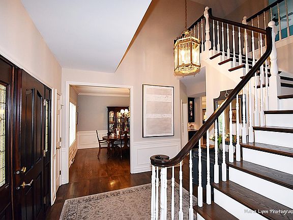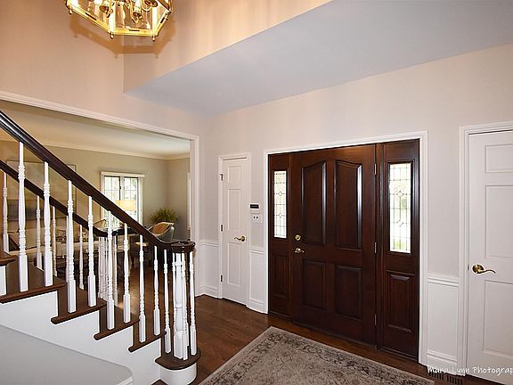 Stunning home on a private setting in prestigious Royal Fox! Beautiful hardwood floors throughout most of the home*Open floorplan features an updated kitchen with large center island, granite counters, stainless appliances, and gorgeous French country cabinets! Kitchen flows into spacious family room with woodburning brick fireplace and shiplap accent wall as well as into the sunroom ~ perfect spot to enjoy the abundant light and overlook the private backyard! Work from home? There is a first floor office with hardwood floors that is the perfect space! Master suite complete with vaulted ceilings, hardwood floors, WIC, adjacent sitting/flex room, and en suite bath featuring dual sinks, upgraded vanities with quartz counters, large soaker tub and separate shower! Bedroom 2 has its own upgraded bath and WIC. Two additional large bedrooms upstairs (both with WIC's!) along with another full bath with dual vanities! Need more space? Basement is finished complete with a full bathroom, dry bar with beverage fridge, and plenty of finished space to utilize! You'll enjoy your evenings in the backyard complete with hardscaped patio and outdoor gas fireplace all backing up to the forest preserve for the ultimate in privacy! One of the best lots around! Hurry before someone else calls this HOME! Newer Roof & skylights (approx 5 years old)*Patio and outdoor fireplace (approx 5 years old)*Newer garage doors & openers.