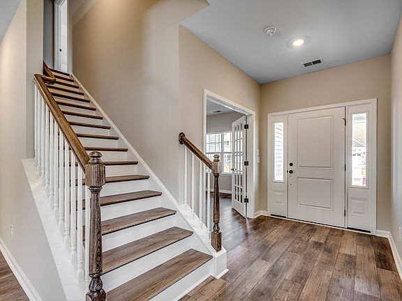 This craftsman-style home was made for easy living and entertaining! Whether you like to throw small private dinners or have a huge gathering this home can accommodate you well! The first-floor entry is elegant and spacious as well as the large two-car garage which is great for vehicles and storage! This home has access to second-floor storage to keep decorations within hand reach! Natural gas community with a great amenities center and wonderful active community! The beamed decorative ceiling in the living space makes a wow statement! This home offers a box tray ceiling in the primary bedroom suite, indoor and outdoor gas fireplaces, rear and front covered porches, and luxury vinyl plank flooring that runs throughout most of the first floor. The second floor has two additional bedrooms, a loft, and a full bath upstairs! Beautiful upgraded white shaker-style cabinets with quartz tops and brushed satin pulls! The kitchen comes complete with a gourmet appliance package too and decorative moldings in multiple locations! Large shower stalls in the primary bathroom and a first-floor powder room, comfort-height toilets, and raised vanities also complete the bathrooms! The large office with French doors upon entry to the home too which can be used as any type of flex room you need and desire!