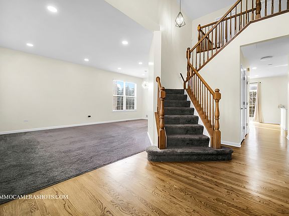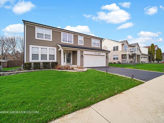 This spacious 5-bedroom, 3.5-bathroom home offers charming curb appeal with an inviting covered front porch. Inside, a dramatic two-story living room is filled with natural light and opens to the dining area, making it ideal for entertaining. The home has been freshly updated with new paint and brand-new carpet throughout. A striking split staircase creates an impressive focal point, flanking the kitchen and foyer. The large family room feels warm and welcoming, featuring a cozy fireplace and custom built-in shelving-perfect for everyday living. Upstairs, you'll find five generously sized bedrooms, including an oversized primary suite with a sitting area. Nine-foot ceilings on the first floor add to the home's open, airy feel, while the finished basement expands your living space with a spacious recreation room, full bathroom, and a separate playroom or bonus room. Step outside to enjoy the freshly painted deck, ideal for relaxing or entertaining. Conveniently located within walking distance to Metea High School, and just minutes from the Metra station and I-88, this home offers comfort, space, and an unbeatable location.A very good credit score (680+), good rental background. An Application & Credit Check is required for each person 18 years old & above. No Evictions or Judgments. Valid Proofs of Income: W-2 & 2 most recent check stubs, 1099 & 2 months of bank statements. No Co-Signers. and income 3x the rental income is required. Deposit 1.5X Times of Rent. Minimum 12 months lease term. Tenant pays for utilities, trash and sewer.