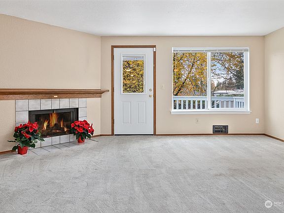 Nicely updated townhouse in the zero lot line townhouse development (you own the land) of Birchwood Village. Nicely remodeled kitchen with stainless appliances, laminate flooring, tons of cabinets and counter space. Large living room with wood burning fireplace and access to deck and backyard. Formal dining room with pass thru to kitchen. Updated 1/2 bath and access to one car garage round out the main level. Upstairs features 3 spacious bedrooms including large primary suite with double closets and remodeled bath. Main full bath on upper level has also been remodeled. Low HOA dues (lawn care included in dues) and very nice location in the heart of Federal Way.