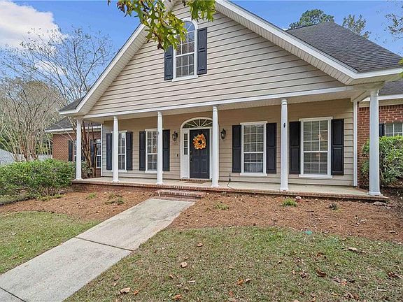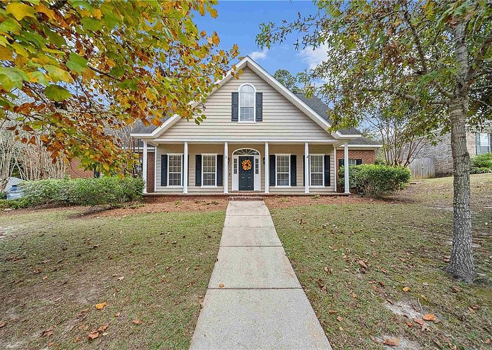 This home is neat, clean and beautifully updated! 5-bedroom, 2.5-bath home with over 3,000 sq. ft., with a sparkling POOL and oversized fenced backyard in a super convenient Spanish Fort location! Walk to school, 1 mile to the grocery store and dining on the Causeway, 8 minutes to Downtown Mobile. The spacious kitchen showcases warm quality wood cabinetry, gorgeous quartz countertops, and stainless-steel appliances, including a gas cook top. Enjoy multiple living areas with a formal dining room, cozy living room featuring a brick gas fireplace, and a bright SUNROOM overlooking the backyard and sparkling POOL. The first-floor primary suite offers an adjoining office or nursery and a spacious UPDATED bath with double vanities, jetted tub, separate shower, and dual walk-in closets. Upstairs includes 4 additional bedrooms, a large UPDATED hall BATHROOM, 5th bedroom also makes a great bonus/media room (current use). Additional features include walk in attic space, laundry/mud room with half bath, double garage w/additional work/storage space, and a Large FENCED BACKYARD with an additional fence around pool for added safety. Property goes beyond first fenceline and backs up to woods. You don't want to let this one get away! Buyer to verify all information during due diligence.