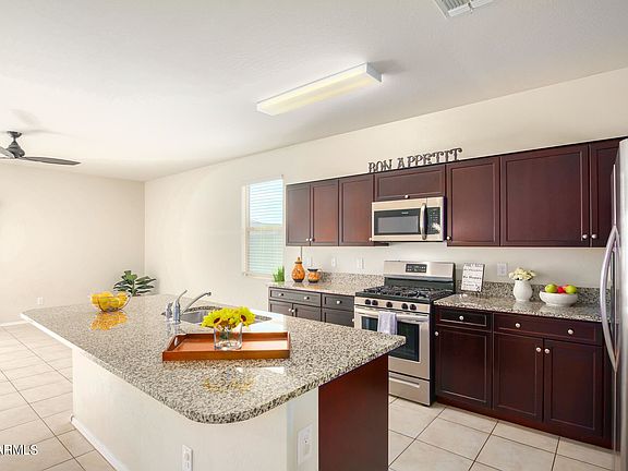 Why wait for a new build Built in 2019 come check out this nicely maintained 3 bedroom, 2 bath home in the Tartesso Master Planned Community in Buckeye, AZ! The open concept kitchen features spotless Stainless Steel Appliances, Granite Counters, plenty of cabinets, a pantry, and a HUGE center island w/breakfast bar. In the main bedroom, you'll discover an en-suite with double sinks and a large walk-in closet. Save THOUSANDS on Stainless appliances plus washer/dryer ALL to convey! Private and low-maintenance corner lot features a PERFECT grassy rear yard PLUS side yard for a garden or dog run! The community amenities are deluxe splash pads, sand volleyball, lighted tennis courts, walking trails, basketball courts, and baseball diamonds! See it today!