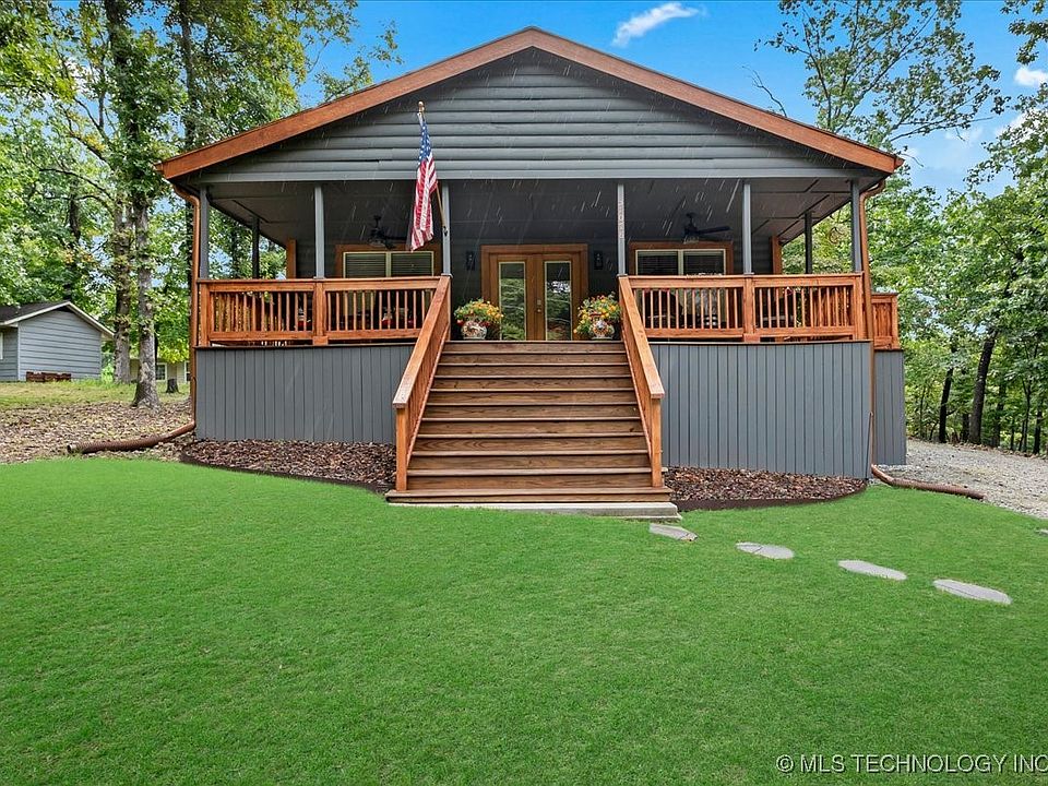 Escape to Your Very Own Piece of Paradise in the Coveted Gran Tara Gated Community on Grand Lake. Dreamy Log Cabin Awaits You and Yours as the Perfect Escape! Open Living, Kitchen and Dining Areas w/ Vaulted Ceilings & a Wood Burning Fireplace. This 3 Bedroom Home Includes 2 Full Baths w/ Private Bedroom & Hallway Access Plus a Spacious Upstairs Loft. Indoor Washer & Dryer Hook-Ups, in Addition to Walk-In Closet Storage. Enjoy the Majestic Wooded Outdoors from the Newly Renovated Covered Porch or Flex/Sun Room in the Back of the Home. Two Lots, Equaling Nearly ½ an Acre (m/l), Cleared & Included in this Purchase Plus Add'l Lot Opportunities in the Front of the Home for Privacy. Enjoy this Amazing Community & Gran Tara Amenities that Include Club House, Pool, Tennis Court, Boat Ramp, Swimming Docks and So Much More. Newly Painted Exterior, Renovated Front Porch & Remodeled Master Bath. Seller to Install New Roof Prior to Closing; Buyer to Approve Color. Walk to the Lake and Join the Grand Lake Community!
