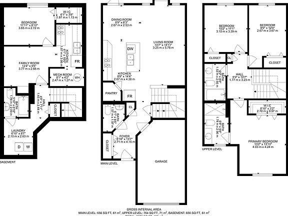 Welcome to this beautiful Laurel townhome with NO condo fees, offering over 2000 sq ft of stylish and functional living space. The open-concept main floor showcases a bright kitchen with maple cabinets, tile backsplash, black appliances, and an eat-in island, all flowing into the dining area. The spacious living room, with large windows and elegant built-in storage, creates a warm gathering space. Upstairs, the primary suite features a walk-in closet and 3-piece ensuite, while two more bedrooms and a full bath complete the level. The fully finished basement adds incredible value with a family room, 4th bedroom, full bath, laundry, and a second kitchen—ideal for extended family or guests. Outside, enjoy the newly painted deck, front porch, and a generous yard. With a single attached garage (new motor), this home blends comfort and convenience, all close to parks, a K-9 school, rec centre, and free park & ride. A must-see in Laurel!