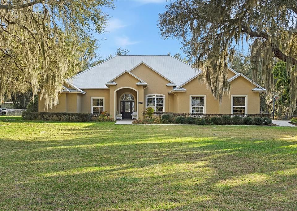 This one of a kind, custom built home is situated on a full 1 acre lot, boasting over 3100 square feet under air, including 3 bedrooms, an oversize office space that could be used as a 4th bedroom, 3 full bathrooms and a half bath in the spacious second living area. Right as you walk in the foyer this home showcases an open concept, including the formal dining area, gourmet kitchen with custom cabinetry, huge island with seating and marble counter tops, coffered ceilings and a captivating living area, which all boast new hardwood floors with custom baseboards!! The master suite is simply luxurious, with a seating area overlooking the back porch, a spa like master bath with submerged tub, rainfall shower with seamless glass enclosure , dual vanity with solid stone counters and a huge walk in closet! there is also a speaker system (whole house including master bath) with controls throughout the home which can have you enjoying music on the back porch while the house is quiet!! The home has a brand new seamless metal roof, tank-less gas water heater, surround sound in both living rooms, security camera throughout, a generator hookup for emergencies, 2 separate wells, full wet bar in the second living area/game room, brand new electronic fireplace and an extended back porch with fire pit area for entertaining, this truly is a remarkable home, DO NOT miss your opportunity to own it!!