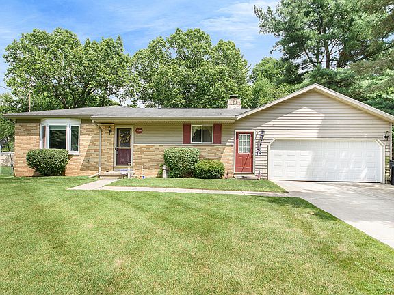 Well maintained ranch in quiet and convenient neighborhood, living room with bay window, open kitchen with ceramic flooring, dining area with fireplace and sliders to patio. Three main floor bedrooms, hardwood floors, basement with recreation room, fourth bedroom with egress window, workout room plus second bathroom in laundry area, central air, deck, brick and vinyl exterior, attached two-car garage with storage/workshop area, fenced yard, newer garage door and eaves troughs. newer concrete driveway. Great Value!
