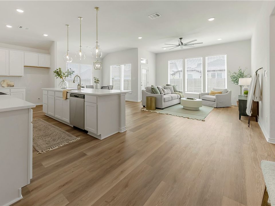 Welcome home to 3108 Charge Lane in Bryan's desirable Rudder Pointe! This beautifully crafted, NEW home by Ranger Home Builders features three spacious bedrooms and three full bathrooms, perfect for families or those who love to entertain, PLUS a dedicated home office space or flex room crafted with 8' French doors! The elegant foyer draws you into a sprawling great room featuring the living, dining, and expansive kitchen. With 10-foot ceilings and decorative beams, this home exudes a sense of spaciousness and style. The large kitchen boasts an oversized island, ideal for meal prep or casual gatherings, complemented by soft-close cabinetry and sleek quartz countertops. Enjoy abundant natural light streaming through the oversized windows, accentuating the home's elegant finishes. Outfitted with blinds, LED lighting throughout, and fans in all bedrooms, this home provides year round comfort. The luxury vinyl plank flooring adds both beauty and durability within the common areas + office, making it perfect for everyday living. Don’t miss your chance to make this exceptional home yours! Schedule a showing today and experience the perfect blend of modern living and comfort with a new home from Ranger Home Builders