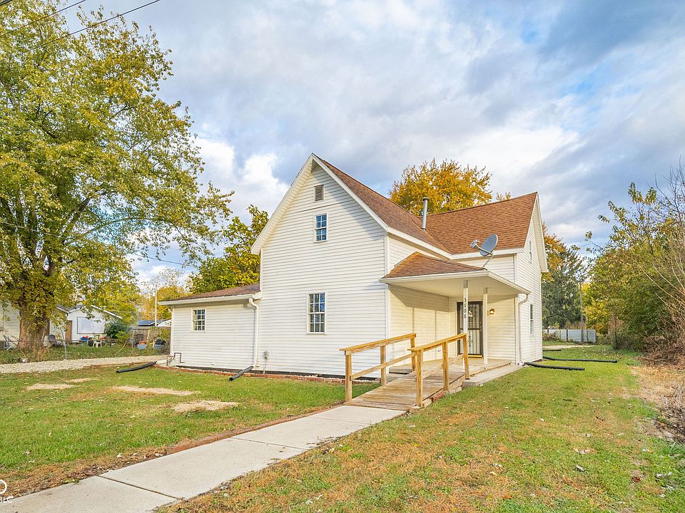 Just outside of New Castle, this wonderful 2500+ sq ft home features recent updates & large bedrooms at an affordable price! Excellent layout containing 4 bedrooms with an additional room upstairs that could function as an office or a 5th bedroom. ADA accessible with an outside ramp & main floor bedroom suites. Two bedrooms are on the main floor -- one has a private full bathroom & the other a private half bath. New flooring and paint throughout. Updated kitchen & large living room. The attached garage has plenty of storage space & an attached workshop. The private back deck is perfect for fall evenings!