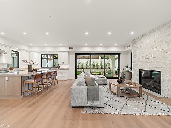 The chef’s kitchen is a standout, featuring Taj Mahal quartzite counters, Wolf & Asko appliances, a Sub-Zero refrigerator, 8-burner stove, a sleek drawer microwave and walk-in pantry. The primary suite offers a spa-like retreat with Porcelanosa tiles, a freestanding luxury soak tub and Hansgrohe fixtures, with a walk-in wardrobe that would make Oprah jealous. A fireplace with an El Dorado stone accent wall provides a cozy centerpiece to the living space.