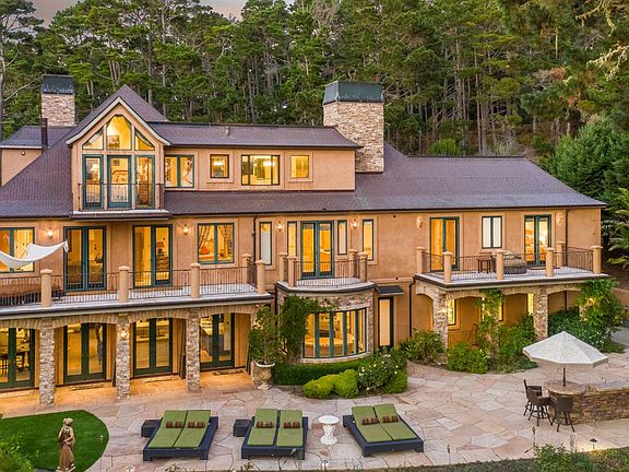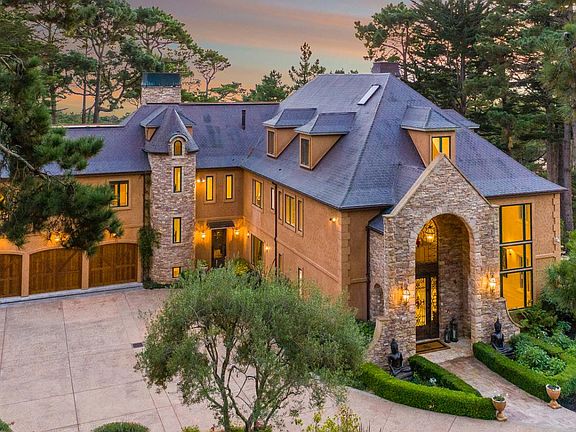 Tucked away behind Pebble Beach's famed 17 Mile Drive & framed by breathtaking ocean views, this private & palatial Tuscan-style estate offers 8,995 SQ FT of lavish, livable luxury. Situated on over an acre of lush landscaping & mature trees, a stately motor court culminates at an impressive stone facade w/ an arched entryway. Designed for entertaining, yet supremely secluded, this masterpiece is the quintessence of comfort. A brilliant estate offering an elevator, wine cellar, plush theater, game room & exercise room. Poised for alfresco entertaining, a sprawling flagstone patio is appointed w/ a hot tub & expansive BBQ area w/ a pizza oven. Gated property with a three-car garage, copper roof & gutters, Savant smart home, dynamic surround-sound, 5 fireplaces, alarm system & guest apartment, this home is perfect for enjoying Pebble Beach & surrounding beauty. Backdropped by views of Point Lobos, minutes to Pebble Beach Golf Links & a short drive to Carmel's quaint boutiques & eateries.