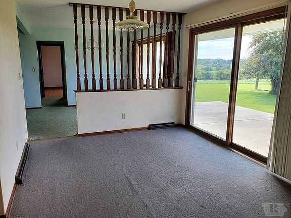 Acreage! Ranch style dwelling with an incredible view!! The main floor contains a spacious kitchen, dining room, living room, 3 bedrooms with wood floors, a full bathroom, and a 1/2 bathroom/laundry room. There is a full basement that is unfinished. There is a two car attached garage. The roof is in good condition. The siding is vinyl. The septic will be inspected, but location is unknown. The water is rural. There is a well. The house sits on approximately 5.47 acres. There will be a new driveway installed by the state, due to the new highway. Maps are available for viewing. This is a great house with plenty of potential and a view you can't find just anywhere. Call today for you private showing today!!