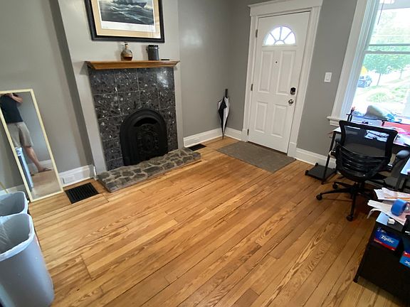 Completely renovated interior including fresh paint, restored 100+ year-old hardwood floors, new drywall, brand-new electrical (outlets, ceiling fans, switches), new plumbing fixtures, and an entirely new kitchen