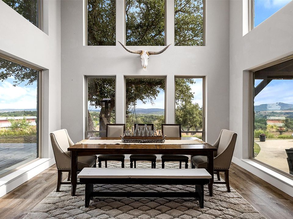 NEW PRICE - MOTIVATED SELLER - Million Dollar Views!!! Welcome to this remarkable unrestricted 10.1-acre hilltop estate, offering panoramic vistas that stretch for miles. Experience breathtaking sunsets from this serene Hill Country retreat. The property is bordered by a sprawling 2,000+ acre ranch, providing exceptional privacy along the rear fence line. The estate features a total of 4,213 +/- square feet, including a main residence (3353 SF) and guest quarters (860 SF) , 6 BDRM and 3 Baths, accommodating family and guests with comfort and style. 2023 the property was extensively remodeled w/designer finishes and numerous upgrades, including a spa-like primary suite w/luxurious bath, walk-in closet and laundry area. Large picture windows throughout the home capture stunning Hill Country views from every angle. The dining room is “picture perfect” surrounded by glass and towering ceiling. The great room is highlighted by a massive stone wood-burning fireplace creating a warm and inviting atmosphere. The kitchen is truly a chef’s dream, outfitted w/stainless steel appliances, six-burner range w/exhaust vent, built-in ice maker, microwave, dishwasher, double ovens, and farmhouse sink, a spacious butler pantry with wine chiller, providing ideal storage for entertaining and convenience. Enjoy the outdoors with a swimming pool, hot tub, and incredible views from the covered porches and spacious deck, perfect for relaxing or hosting gatherings. Exterior amenities include a 7KW solar panel system, 40,000-gallon rainwater collection system, 4,000-gallon concrete storage tank for water well. Covered parking area, paved circular driveway, chicken coop, metal covered parking area, RV Hook Up with 50 AMP electric and water, metal pole barn, raised bed garden area and seasonal pond and fencing. This is a property you will be proud to call home.