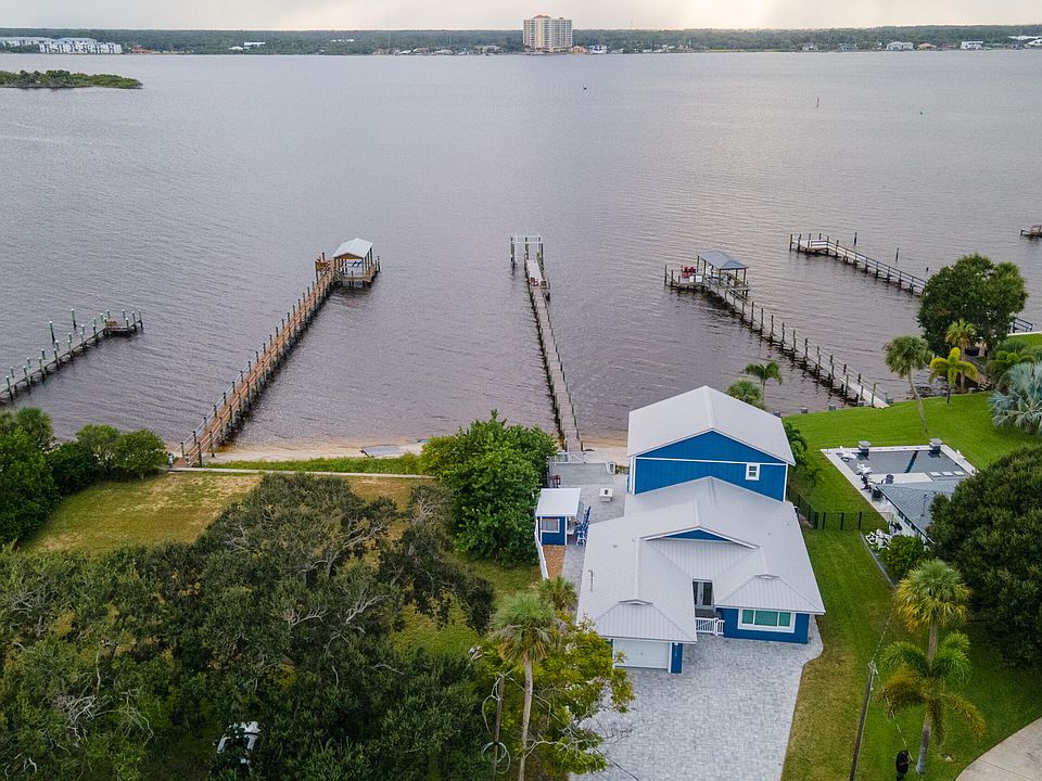 YOUR INTERCOASTAL RIVERFRONT TRANQUILITY AWAITS! THIS UNIQUE HOME OFFERS A LOW MAINTENANCE EXTERIOR COMBINED WITH AN OPEN FLOORPLAN FEATURING PANORAMIC RIVER VIEWS AND OUTDOOR ACCESS. A FULL REMODEL WAS COMPLETED IN 2022 WITH EXTERIOR IMPROVEMENTS TO INCLUDE: CONCRETE BLOCK AND CEMENT HARDI BOARD CONSTRUCTION, METAL ROOF, UPGRADED INSULATION, ALL IMPACT GRADE WINDOWS AND STACKING SLIDERS, A 250 FT DEEP WATER DOCK & 15K OPEN TOP BOAT LIFT, A LARGE WRAP AROUND PAVERED PATIO WITH ENCLOSED SUMMER KITCHEN (PERFECT FOR ENTERTAINING), SHADED BY A REMOTE CONTROLLED 20 FT SUNSHADE, JUST TO LIST A FEW. THE INTERIOR PROVIDES LARGE ROOMS WITH SPECTACULAR WATER VIEWS, CROWN MOULDING, CELING FANS AND SO MUCH MORE.. THE MODERN KITCHEN OFFERS GENEROUS STORAGE WITH CUSTOM CABINETS, A LARGE QUARTZ BREAKFAST BAR, STYLISH APPLIANCE PACKAGE AND A DINING NOOK WITH RIVER VIEWS AND PATIO ACCESS, ALL WHILE CONNECTING YOU TO THE LIVING AND FAMILY ROOMS. HIGH GRADE ENGINERED LAMINATE FLOORING FLOWS THROUGHOUT T HE HOME, ACCENTING THE LARGE ROOMS GENEROUS AMBIENT LIGHT & THE INTERCOASTAL RIVER VIEWS. LIGHT LEVELS AND PRIVACY ARE MODIFIED BY REMOTE CONTROL WINDOW TREATMENTS. FEATURNIG DOUBLE MASTER BEDROOMS WITH ENSUITE BATHS, THE MAIN FLOOR MASTER BEDROOM IS HANDICAPP ACCESSIBLE, WITH WALK IN CLOSET. THE ENSUITE BATH HAS WALK IN SHOWER AND LARGE VANITY WITH QUARTZ COUNTERTOP. THE SECOND FLOOR MASTER BEDROOM INCLUDES A PRIVATE BALCONY COMPLETE WITH WATER & POWER AS WELL AS REMOTED CONTROLLED SCREEN PERFECT FOR THE EVENING BREEZES. THE ENSUITE BATH FEATURES SPLIT VANITIES, WALK IN WRAP AROUND SHOWER SYSTEM, PRIVATE WATER CLOSET, TUB WITH SPA AND A GENEROUS WALK IN CLOSET. THE 3RD BEDROOM WITH DOUBLE CLOSETS AND ADJACENT GUEST BATH WITH QUARTZ COUNTERTOP VANITY AND A WALK IN SHOWER COMPLETE THE MAIN FLOOR INTERIOR LIVING AREA. THE EXTRA WIDE 1 CAR ATTACHED GARAGE WITH LAUNDRY SYSTEM AND THE OVERSIZED PAVERED DRIVEWAY ROUND OUT THE BEAUTY AND FUNCTIONALITY OF THIS MUST SEE HOME. SCHEDULE YOUR APPOINTMENT TODAY!