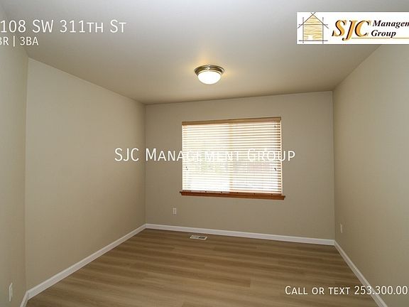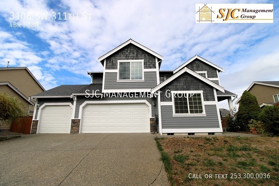 Four-bedroom home in Federal Way for rent. Features LVP flooring throughout the downstairs, gas fireplace, large patio, fully fenced backyard, large bonus room, and a 3-car garage. Home includes a living room, kitchen, dining room, laundry room, office, four bedrooms, and two and a half bathrooms. Schedule a showing or take our virtual tour today! Required $85 at move in and $35/mo resident benefit packet. Pets [breed and size restrictions may apply] are allowed pet screening required, approved pets will incur a pet mitigation fee (between $150 and $350) at move-in + a monthly pet fee of $35-$75, max two pets. For more information or to set up a viewing please contact the leasing team at SJC Management Group today! Please note showings can be scheduled online at any time. After hours or weekends, showings must be scheduled and confirmed by our staff before the end of the business day. Our business hours are Monday-Friday from 9 am to 5 pm. We are closed for all major holidays. If there is no showtime available that could be because the home is currently occupied, please request a time and our staff will coordinate a showtime with the current occupant." ADDITIONAL TERMS: Required $85 at move in and additional $35 per month Resident Benefit Package offers an array of advantages. With this package, you'll enjoy convenient benefits such as regular delivery of furnace filters and additional perks designed to enhance your renting experience. Credit Risk Mitigation Fee Program. Delinquent accounts on credit may still result in denial of the application. FICO scores at or above 700 no credit risk mitigation necessary; FICO scores between 699-680 = $10 per month; FICO scores between 679-660 = $20 per month; FICO scores between 659-650 = $50 per month; FICO scores between 649-600 = $70 per month; FICO scores between 599-500 = $90 per month; FICO scores at or below 499 = $150 per month If tenants make all rental payments on time for entire length of lease, the mitigation fee will not be included in the lease renewal. If the tenant does not make all rent payments on time according to the terms of the lease, then the mitigation fee will remain as a condition of renewal of the lease. If there are multiple people together the risk mitigation fee will be assessed based on the AVERAGE FICO score of all applicants (excluding co-signers). Applicants who do not have a FICO score may be assigned a score of 600 for the purposes of determining the credit contingency fee. UTILITIES: Not included DEPOSIT REQUIRED: $ 3450