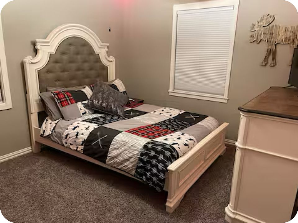 Fenced yardLarge master bedroomNew carpetCovered patioLarge walk in closet