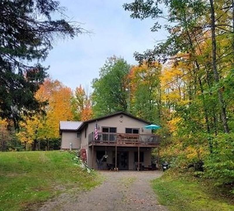 Great year-round home, or investment property. 2 bed, 2 bath home nestled on 2 acres with beautiful views of the lake across the road. Well-maintained and comes fully furnished. Features include a main floor laundry, large deck, pine cathedral ceilings, family room with pellet stove, newer furnace, lower level plumbed for in-floor heat and additional bath. This property offers direct access to ATV and snowmobile trails and its location is in the heart of Nicolet National Forest which offers unlimited outdoor opportunities. The property has been a short term rental for the past 3+ years and generates a very nice revenue. Turn key property!