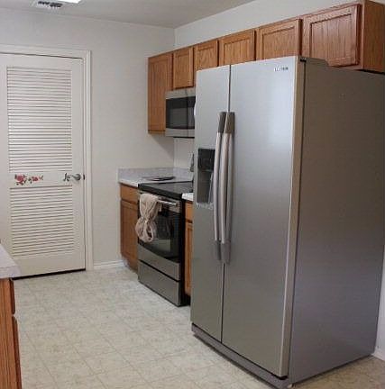 NEW carpet, clean, and move in ready! This 3 bedroom 2 full bath home is ready for your buyers!The nice Samsung stainless steel electric range, refrigerator, dishwasher and microwave hood are included. 2 car finished garage and 11X depth of the yard RV parking! You will enjoy the extra storage or workshop the 16x11 wood shed will provide. Fully landscaped yard with irrigation water provided through the HOA, only $55 a year. Entertain friends and family on the nice covered 9x20 patio which is ready for your hot tub!