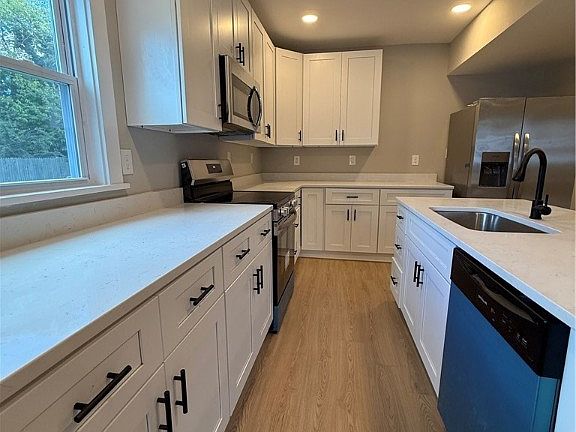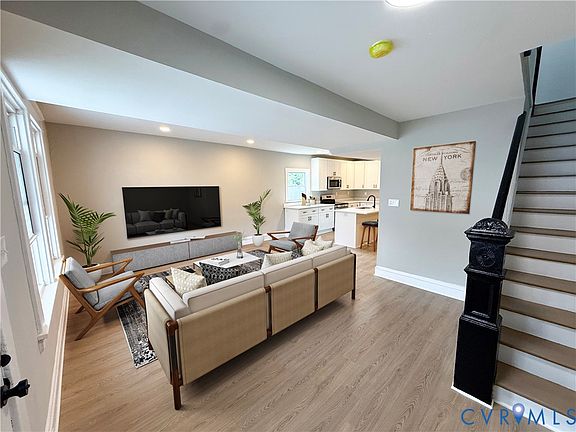 Don’t miss this beautifully renovated 2-story home in Richmond’s Highland Park, offering 3 bedrooms and 1.5 bathrooms. Step inside to modern LVP flooring that flows throughout the home and an open-concept layout that connects the living room to a chic, functional kitchen. The main level features recessed lighting and motion-activated lights for added convenience and a clean, modern feel. The kitchen features white shaker cabinets, quartz countertops, brand-new appliances, and a large island with an integrated sink and dishwasher. Just off the kitchen are a tucked-away washer/dryer hookup and a convenient half bath.