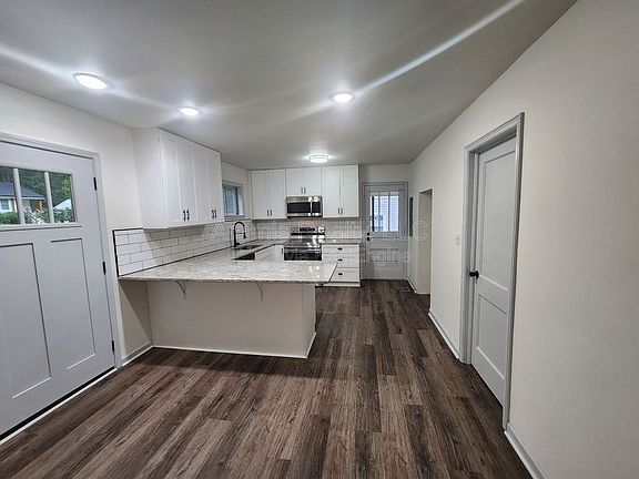 Modern flooringShaker-style cabinetsFreshly refreshed interiorsFenced backyardMain-level primary suiteVersatile flex spaceStainless steel appliances