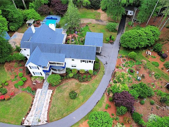 An exceptionally rare and incredible real estate opportunity in Cobb County is now available for purchase. As you enter the property through the gated entrance, you will feel as though you're in a Fairytale. Over 30 acres of land including an idyllic 4 acre lake with fountain compliment the one of a kind Victorian home. A welcoming front porch greets you just before you enter the foyer. A large formal living room and dining room are to your left. A MASSIVE kitchen wing was added to the home with space and cabinet storage galore. Host large events and gatherings in this kitchen with oversized windows overlooking the lake and mature gardens. Special features like dual pantries also double as china closets, dual sinks and cooktops as well as a charming side porch with views of the rear fountain and flower gardens. A large carport was added to the kitchen wing providing convenience and a side entry to the kitchen. Expansive Primary wing off of the main level with private porch, large soaking tub, fireplace and separate laundry room. A ladies wing was added to the Primary suite featuring a wardrobe closet and exercise room. A rear Sunroom was added off of the primary suite and fireside family room overlooking the pool area. Stunning staircase invites you to the second floor offering a large secondary laundry room, 3 secondary bedrooms with walk-in closets, 2 charming full baths and an expansive addition providing an in-law wing with full bath and walk-in closets. Perhaps the most captivating feature of the upper level is the front balcony that overlooks the lake and garden. The basement is finished with a second kitchen, full bath and large living area that opens to the pool patio. Single garage and workshop on basement level. Newly resurfaced salt water pool with high powered pool pump. The level 2 acres to the right of the property offers more potential to build an additional home, barn, event space, have a second property entrance or expand the existing gardens. This property also has incredible features like a recently resurfaced driveway, new slate walkways and porch floors. Attic has been foam insulated, the roof was replaced in 2018. Even though you feel like you are tucked away in a private oasis, the property is located close to major interstates, shopping, schools and private schools. It really is hard to sum up the incredibly unique and exceptionally rare opportunity this property offers. You will have to see it to believe it.