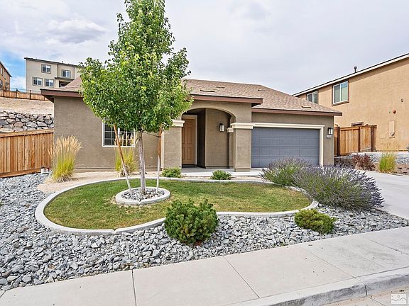 Spacious 4 bd, 3 ba, 2 car garage home in Wildcreek. Mainfloor has greatroom, primary bedroom & bath, with 2 more bedrooms & bath on the opposite side of the house, & laundry room. Kitchen has espresso cabinets, island, stainless steel appliances, & granite countertops. Upstairs is another bedroom, bath & loft. Backyard main level is landscaped, and there is a terraced hill that you can build your backyard dream with a view of the city and Mt Rose. Oversized garage with epoxy floor & tankless waterheater., Close to UNR, TMCC, freeways, Home Depot, Winco and other great shopping. Washer, dryer and refrigerator in kitchen included with no warranty. Refrigerator and shelving in garage, portable hot tub, and dog fence do not stay.