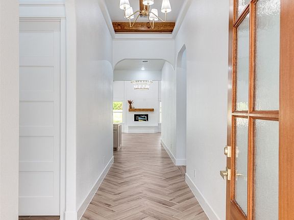 Welcome to your dream home! This beautifully crafted 4-bedroom, 2-bathroom new construction offers modern comfort, timeless design, and thoughtful details throughout. Step inside to an open-concept floor plan with soaring vaulted ceilings accented by striking cedar beams. The spacious living area features an elegant electric fireplace with a custom mantle, perfect for cozy evenings or entertaining guests. The heart of the home is the gourmet kitchen, complete with custom wood cabinetry, a large quartz island, and premium finishes that blend style and functionality. 8-foot doors throughout the home add to the sense of space and sophistication. Retreat to the luxurious master suite featuring a coffered ceiling, designer lighting, and a bold accent wall. The spa-like master bath includes a double vanity, an oversized tiled shower with a sleek glass barn door, and a large walk-in closet with ample storage solutions. Three additional bedrooms offer plenty of space for family, guests, or a home office. Enjoy relaxing mornings or evening chats on the welcoming front porch and take advantage of the large backyard—ideal for entertaining or future landscaping dreams. This home is a perfect blend of craftsmanship and comfort. Don’t miss your chance to make it yours!
