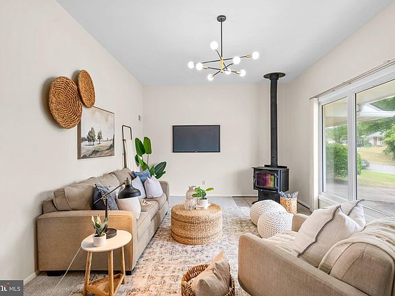 Amazing Home on a Large Corner lot in well established and sought after Calverton community. 3 Bedrooms, 2 1/2 Half, Baths, Newly Painted & Carpeted throughout, Updated Light Fixtures, Large Kitchen, Dishwasher & Gas Oven/Stove 5yrs old, Luxury Vinyl Floors in the kitchen 6mos old, Harmon Wood Burning Stove in the Living Room, Primary Bedroom Shower - 6 yrs, Lower level with Brick Fireplace, Utility Room w/ Laundry, Storage and Work Bench, HVAC 8 yrs old, incredible Backyard oasis with Brick Patio, Lots of lawn space, flower gardens, storage shed. 7 yr old Roof. NO HOA. Welcome Home!!!