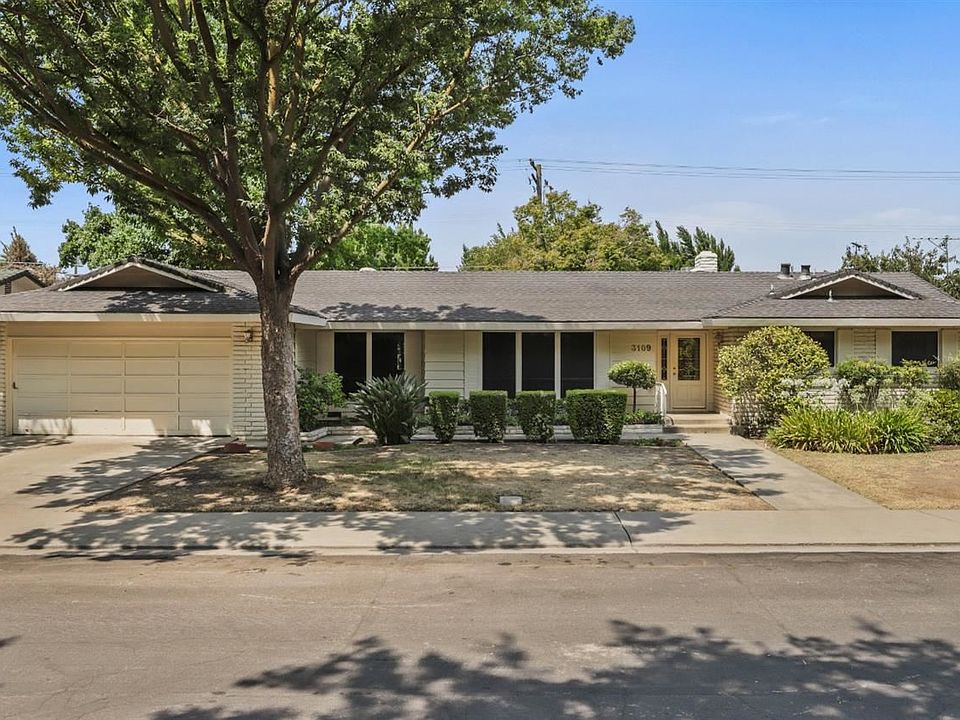 This well-cared-for home is nestled in the heart of an established neighborhood boasting tree lined streets & many single-story homes. Elegant entry door leads into living room with wall-to-wall windows for a grand view of the lush front yard. Dining room features a classic chandelier & floor to ceiling mirrors. Family room features a gas fireplace & sliding door leading out to the oversized backyard complete with covered patio & luscious trees. 4th bedroom off the laundry room with bookshelves & cupboards is perfect for an art room, office, or kids room. Two other good size bedrooms share a hallway bath with dual vanity. Master bedroom offers a slider to access backyard, walk-in closet & cedar closet. Garage has more shelving than you'll know what to do with, so bring your tinkering & toys! Cabinets galore everywhere throughout this charming home! New HVAC. Close to shopping & schools, this is one family-friendly home you do not want to miss!