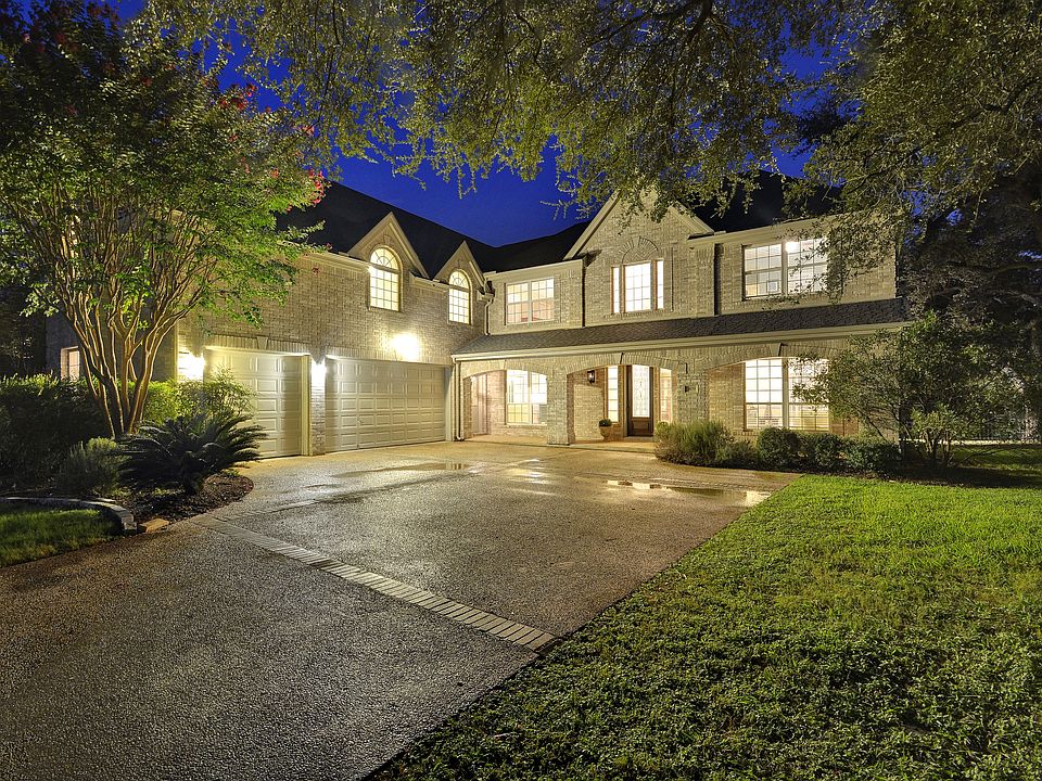 Westlake classic home serenely situated on the green belt w/rich hardwood floors, ceramic tile, & plush new carpet. Chef's island kitchen updated w/a plethora of cabinetry & counter space. Master with fireplace, sitting area, and exercise room. Lavish master bath w/3 large walk inns, oversized jetted tub & walk inn shower. Perfect for entertaining w/French doors leading to a shaded covered patio. Wet bar w/ wine fridge, oversized laundry room, new roof, hot water heater, A/C!