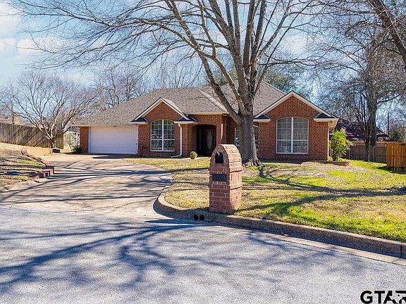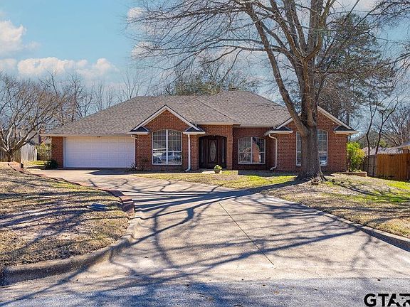 3/2/2 with 1,885 sf on a quiet cul-de-sac in an established neighborhood close to UT Tyler. Open floor plan with a breakfast room and a formal dining room, which can double as an office if needed. This home has had only 1 owner and has been well-maintained. There is a tankless gas water heater for the primary bath, laundry room and kitchen, and a standard gas water heater for the 2nd bathroom. The kitchen was upgraded a few yrs ago with granite counters, vinyl plank flooring and quality stainless steel appliances, including the refrigerator which comes with the house. All of the bedrooms have walk-in closets, and the primary bedroom has 2. The large living room has a gas start fireplace with gas logs. If you prefer wood burning, the logs can be removed. With some new flooring and paint, this could be your dream home. Priced to sell. Don't miss out.